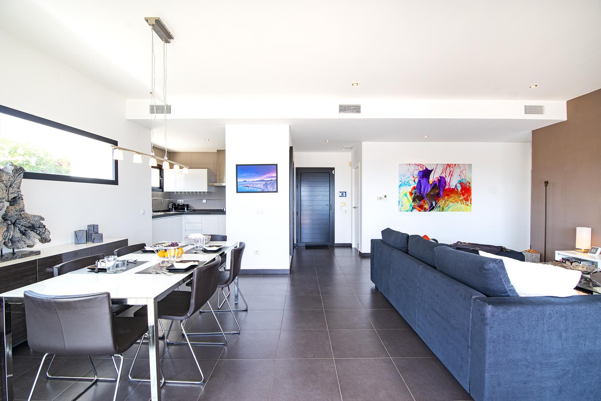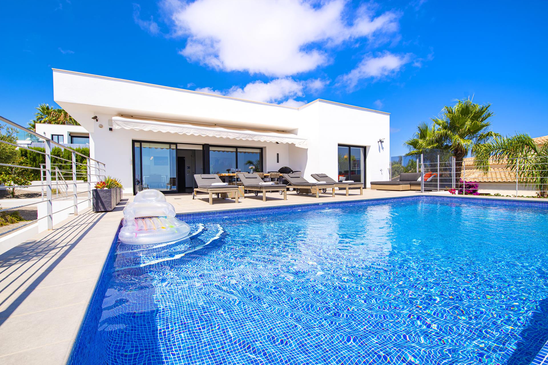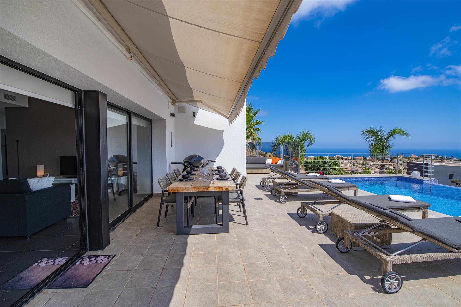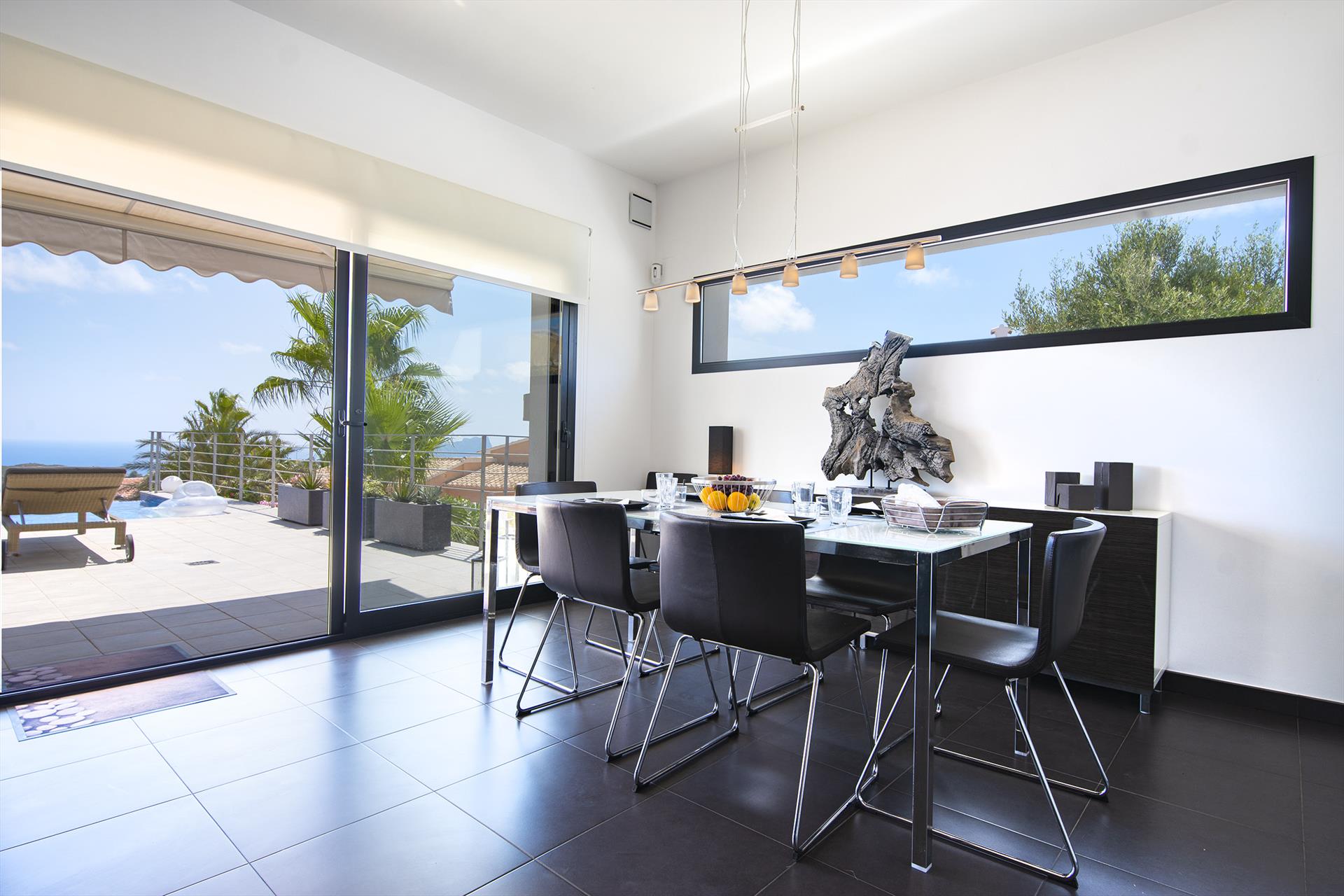 Villa moderna y confortable con piscina privada en Benitachell, Costa Blanca, España para 6 personas. La casa está situada en una zona costera y residencial, a 3 km de la playa de Cala Moraig y a 5 km de Moraira.