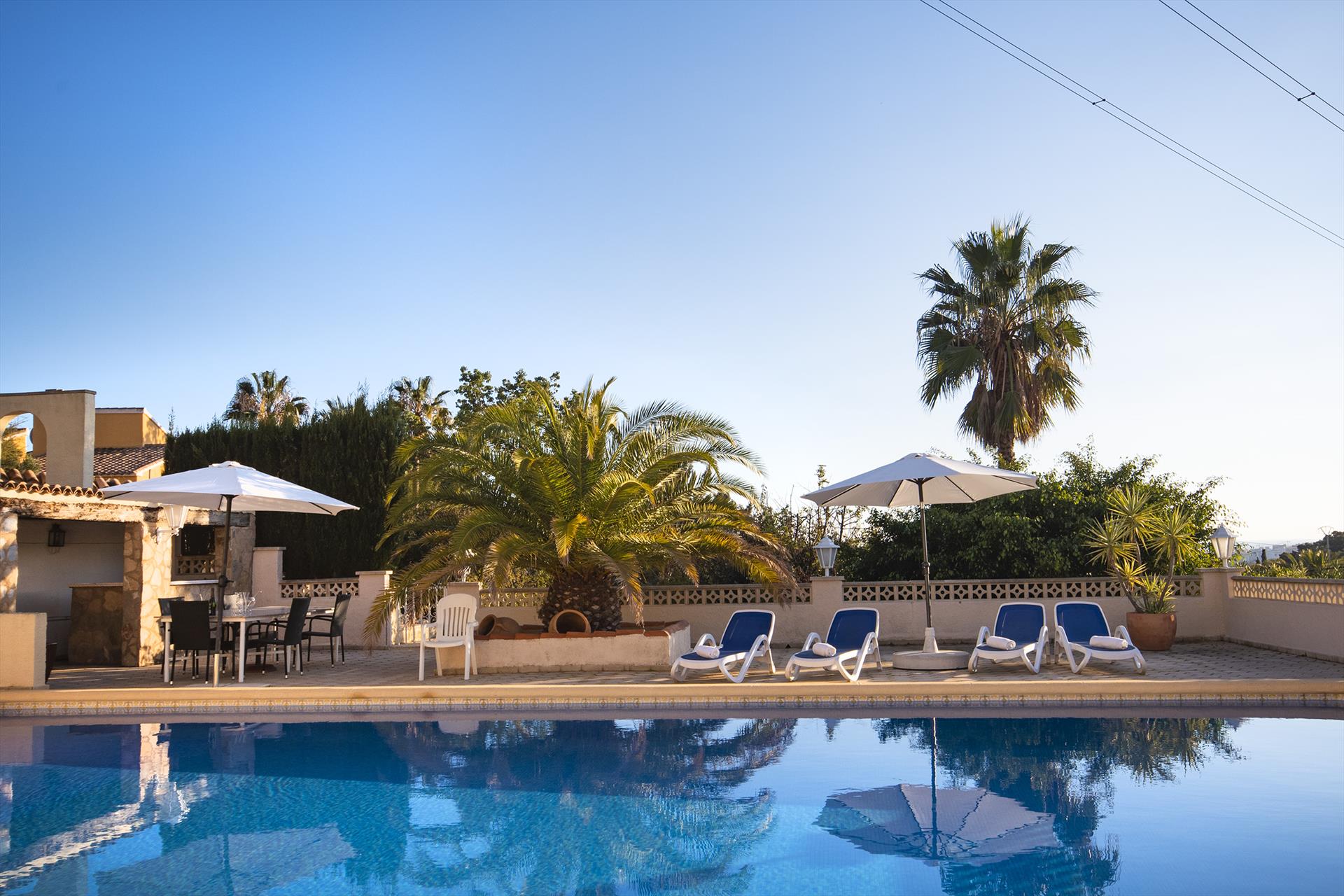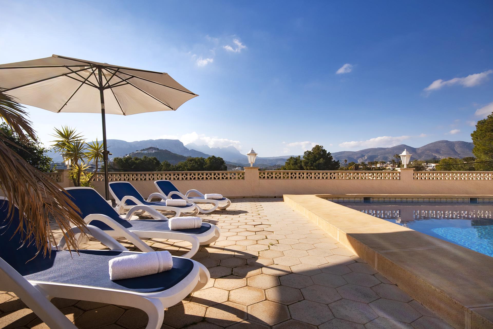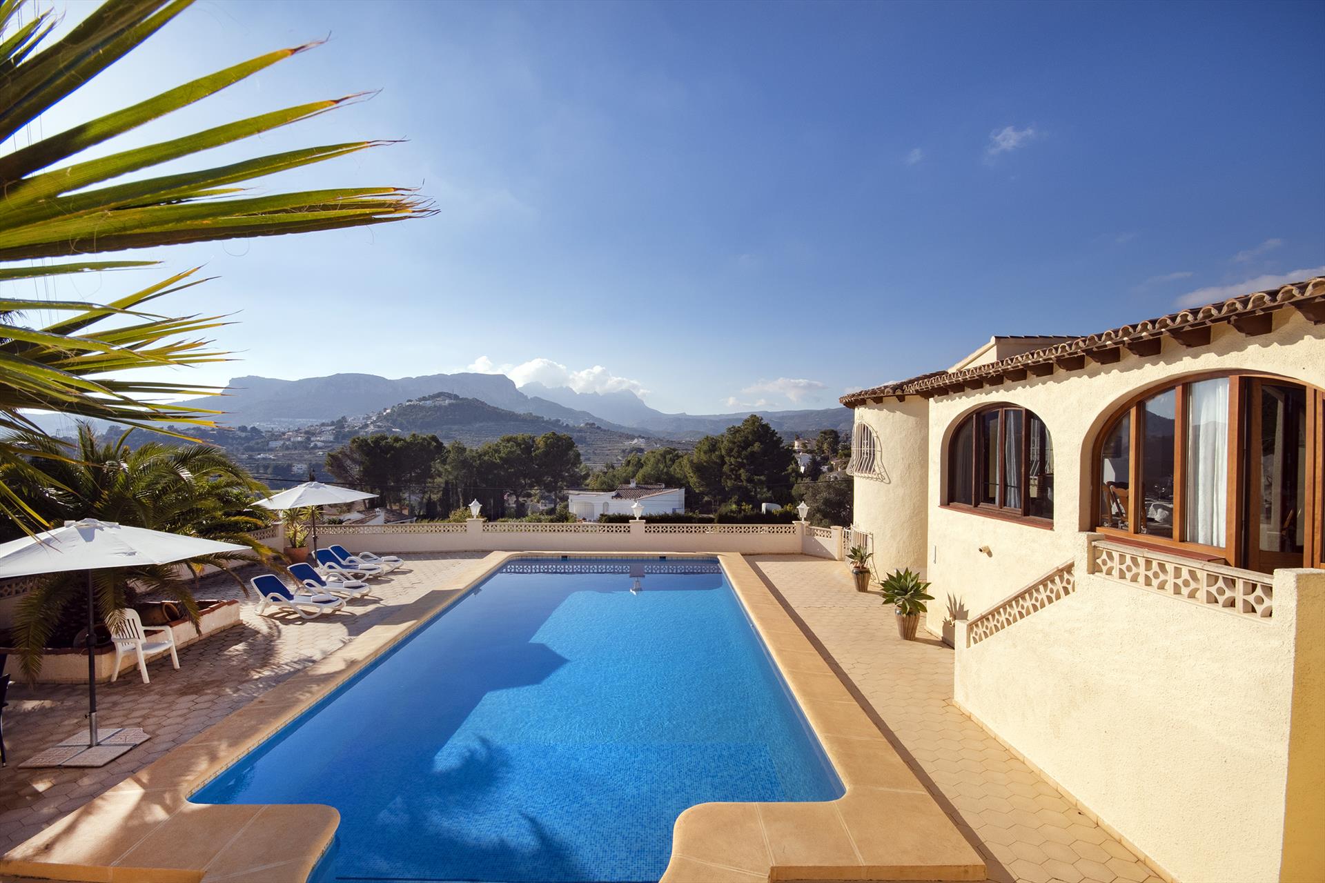 Amplia y acogedora villa con piscina privada en Calpe, Costa Blanca, España, para 8 personas. La casa se encuentra en una zona costera, montañosa y residencial.