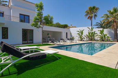 Große und komfortable Villa in Jávea, Costa Blanca, Spanien mit privatem Pool für 8 Personen. Das Haus befindet sich in einem Wohnbereich am Strand, in der Nähe von Restaurants und Bars und 3 km vom Strand La Grava, Jávea entfernt.