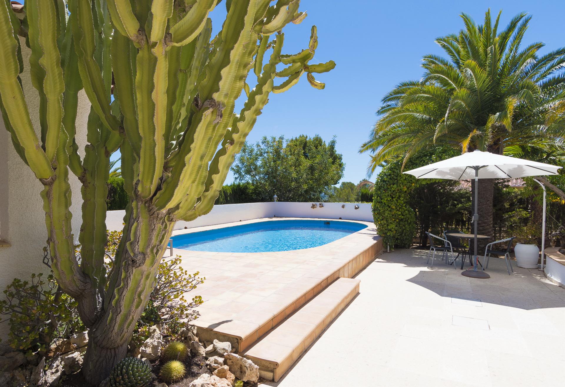 Wunderschönes, komfortables und uneinsehbares Ferienhaus mit privatem Pool in Benissa, Costa Blanca, Spanien für 6 Personen. Dieses Ferienhaus befindet sich in einer ruhigen Wohngegend in Küstennähe, etwa 3 Km entfernt vom Strand von Cala Advocat und etwa 5 km von den Stränden in Calpe und Moraira entfernt.
