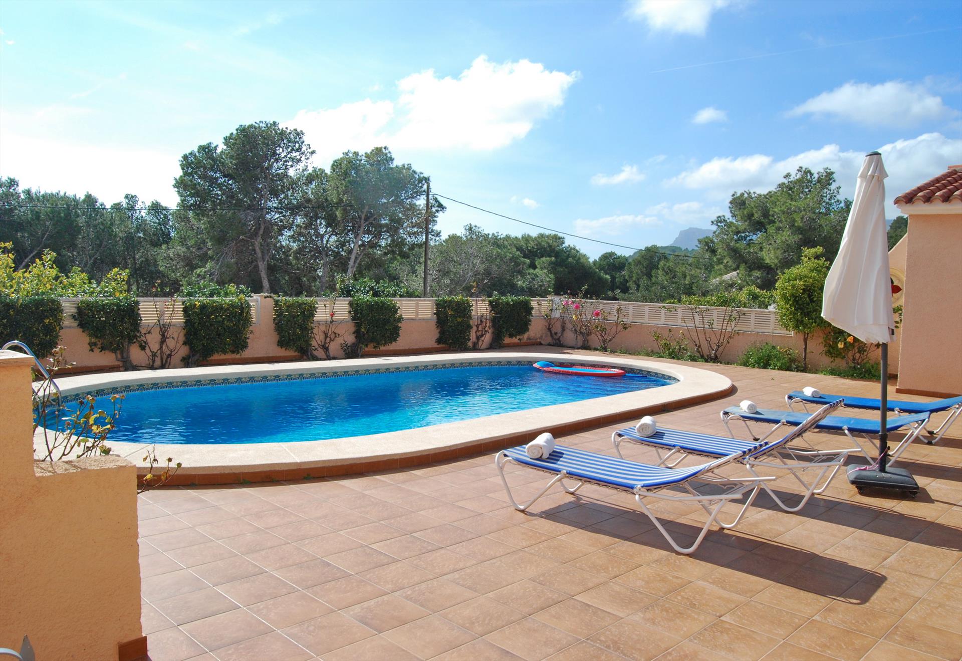 Comfortable villa in Benissa, Costa Blanca, Spain with private pool for 6 persons. The house is situated in a coastal and residential area and at 3 km from Fustera beach.