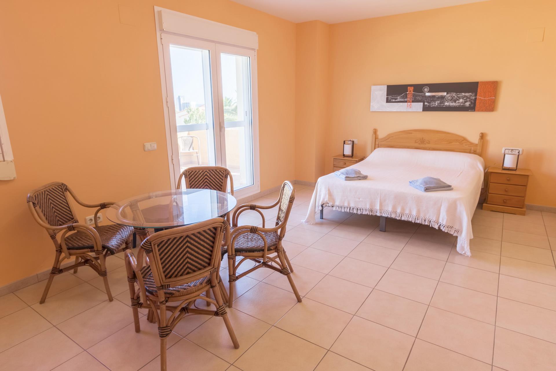 • air-conditioned bedroom with double bed and bathroom en-suite