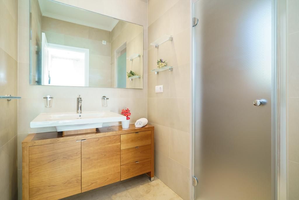 • bathroom with single washbasin and shower