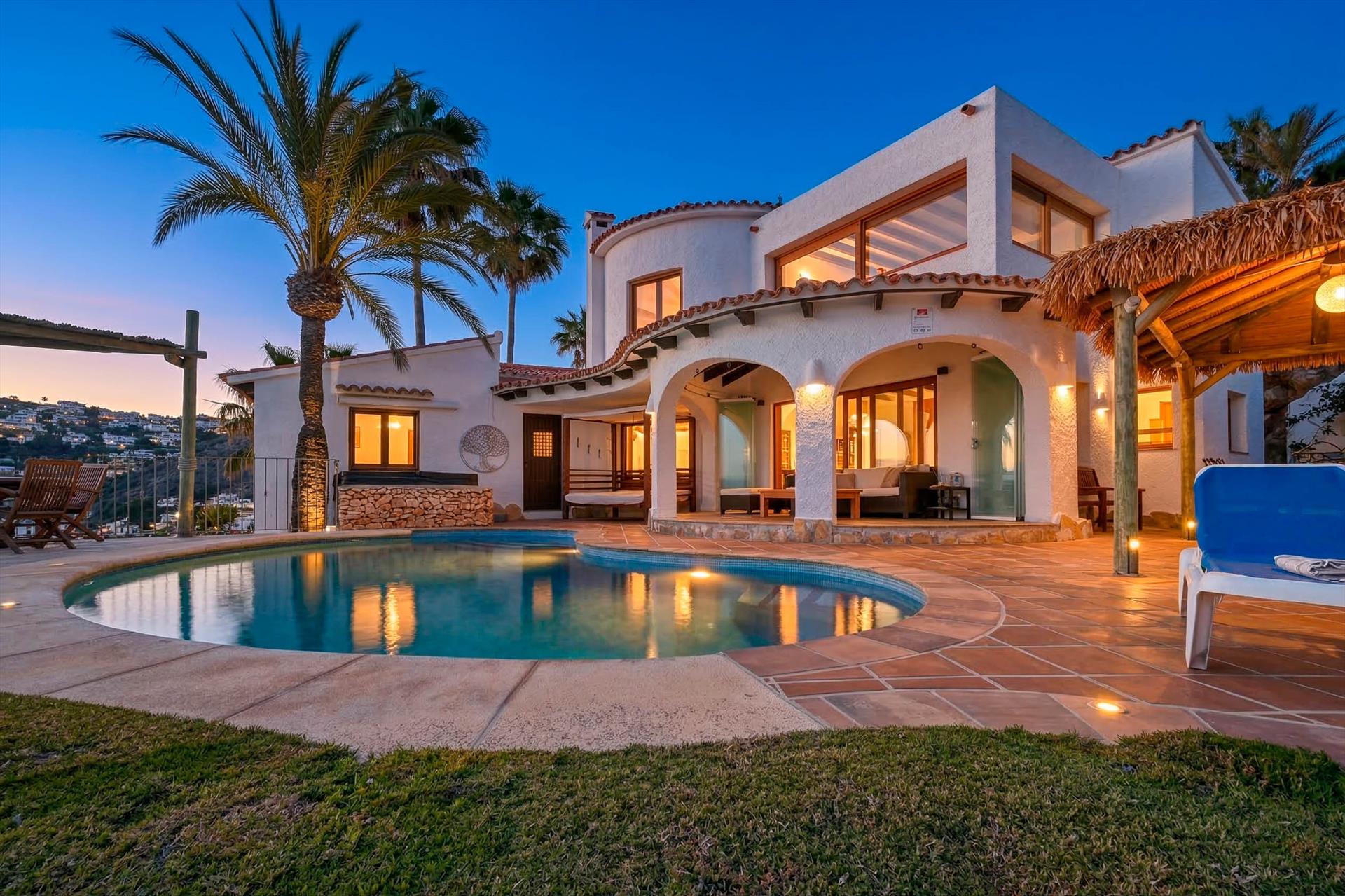 The villa has 2 bedrooms, 3 bathrooms and 1 guest toilet, spread over 2 levels. The accommodation offers a lot of privacy, a garden with trees, a wonderful pool and wonderful views of the bay, the sea, the valley and the town. Its comfort and the proximity to the beach, places to shop, sports activities, places to go out, sights and culture make this an ideal villa to spend your holidays in Spain with family or friends and even your pets.