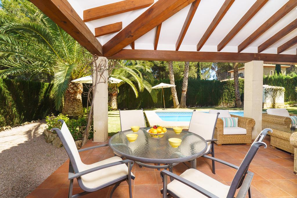Grote en comfortabele villa met privézwembad in Jávea, Costa Blanca, Spanje voor 6 personen. Het huis is gelegen in een woonwijk bij het strand, op 1 km van El Arenal, Jávea strand en 1 km van de Middellandse Zee, Jávea.